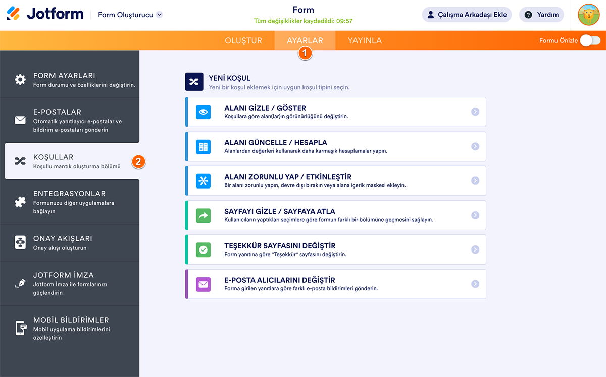 Formunuza koşullar eklemek için “Koşullu Mantık Sihirbazı”nı takip edin.