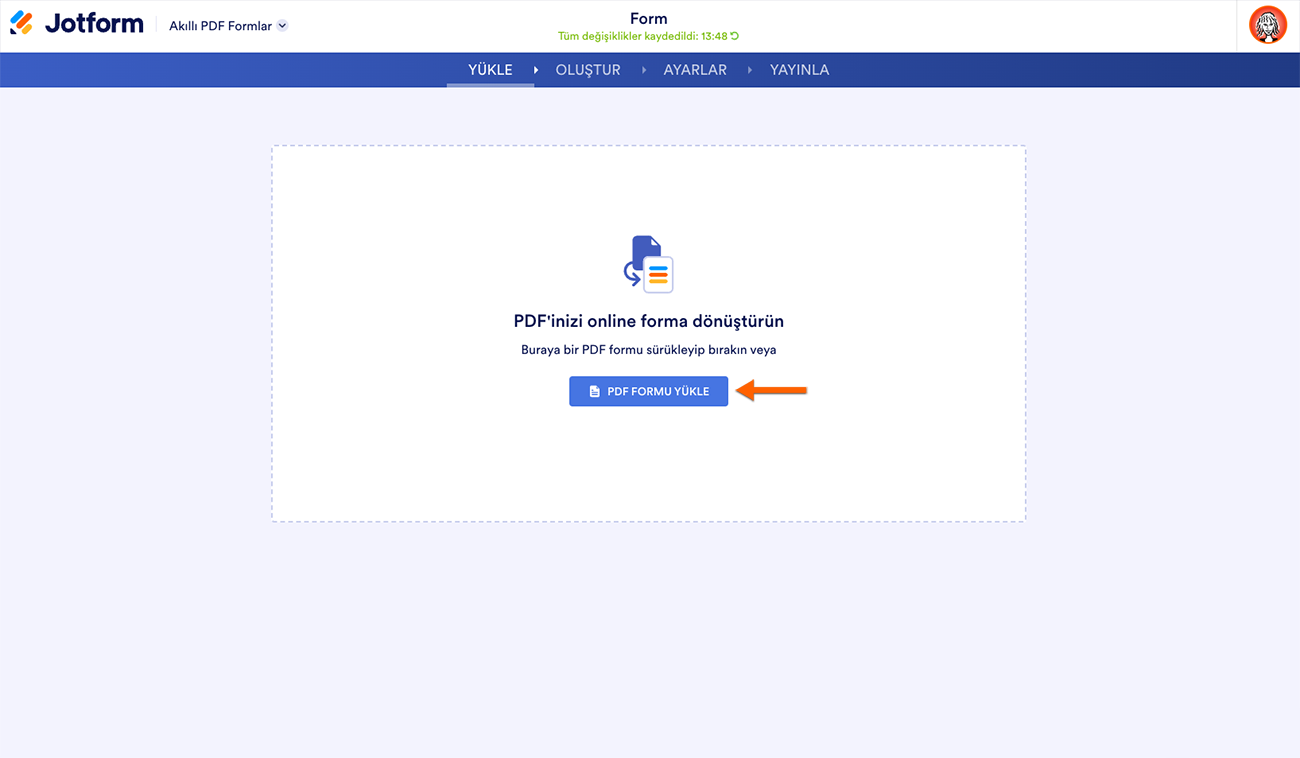 - Akıllı PDF Formlar’da PDF Formu Yükle’ye tıklayın, daha sonra yüklemek istediğiniz PDF dosyasını seçin.