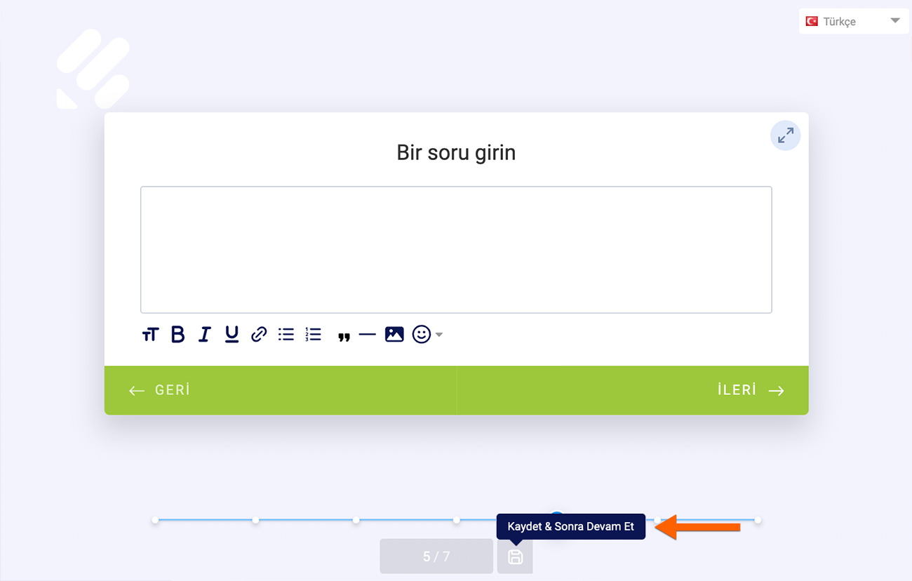 Daha sonra devam etmek için kaydetme özelliği etkin hale getirildi.