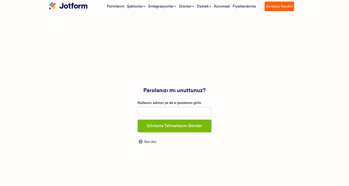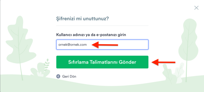 - Kullanıcı adınızı veya e-posta adresinizi girin ve Sıfırlama Talimatlarını Gönder’e tıklayın.