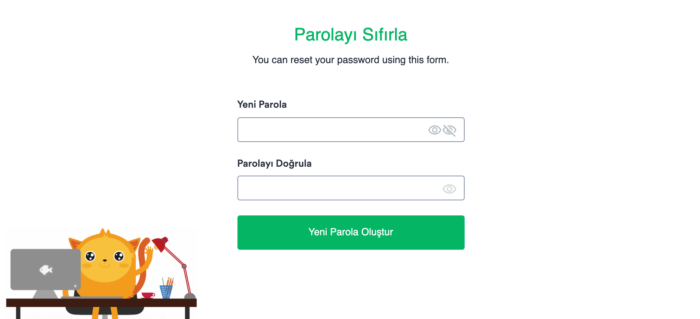 - Yeni parolanızı girin, daha sonra Yeni Parola Oluştur’a tıklayın.