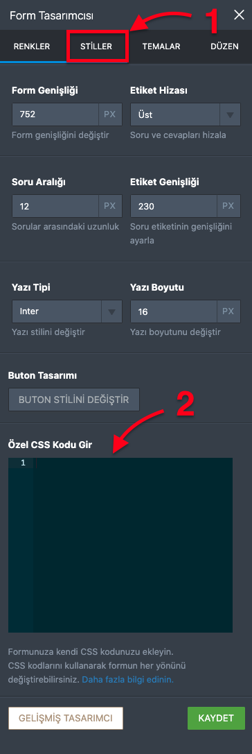 Bu kılavuzda ise sizlere formunuza nasıl özel CSS kodları ekleyebileceğinizi açıklayacağız.