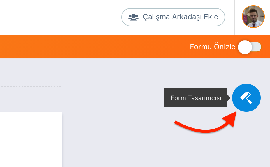 - Form oluşturma aracında sol taraftaki Form Tasarımcısı simgesine tıklayın.