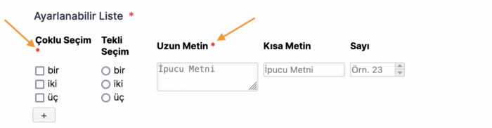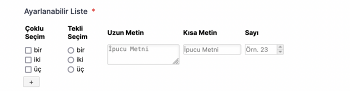 - Listeye dinamik olarak eklenen satırların her birinden toplayabileceğiniz bilgi veya veri türünü tanımlayabilirsiniz.