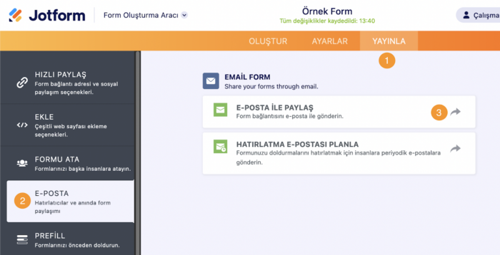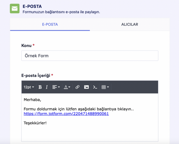 Jotform, kullanıcılarınıza içerisinde form bağlantınız bulunan bir e-posta göndermek için oldukça kolay bir yöntem sunar.