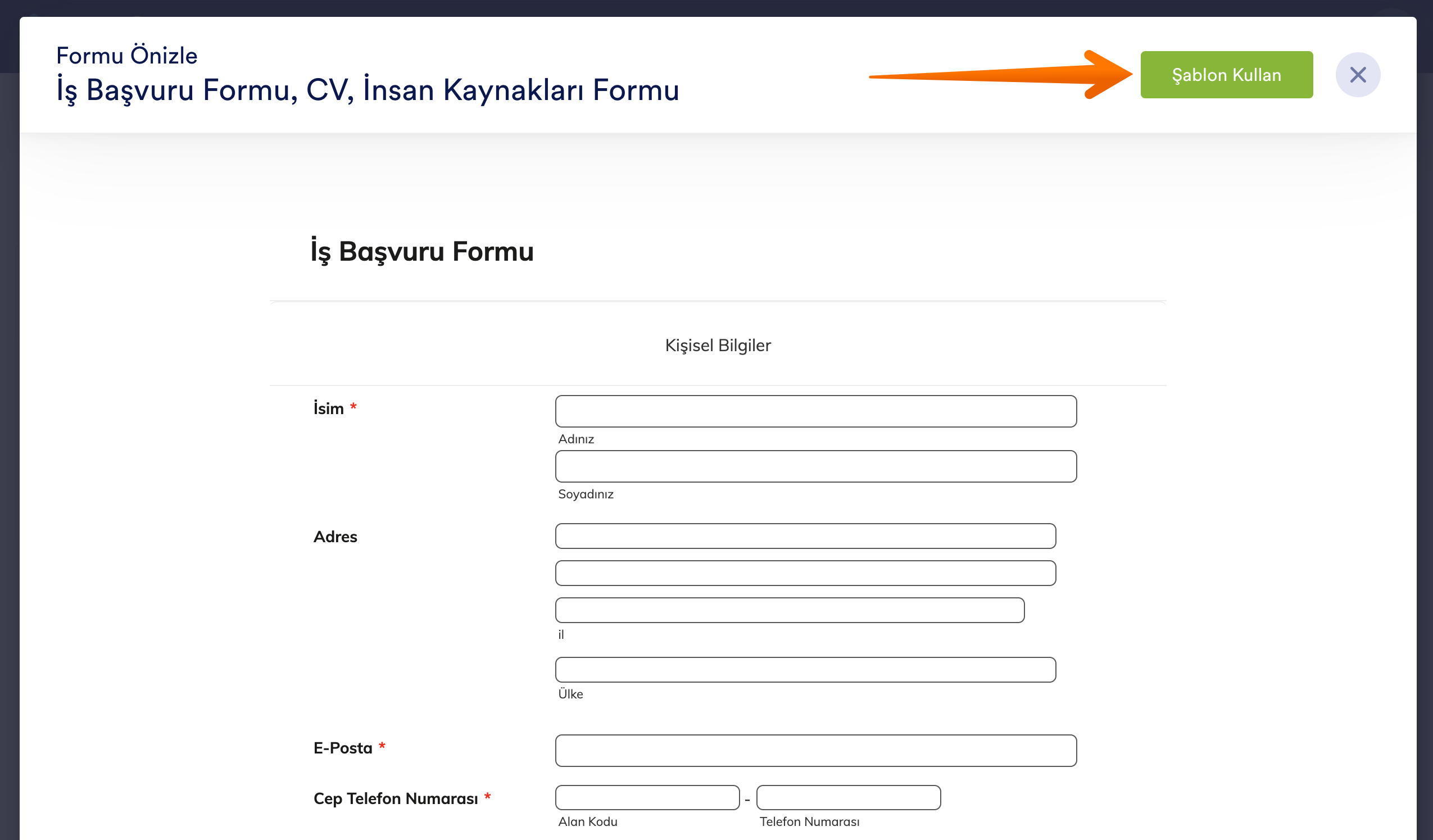 Eğer şablonu kullanmaya karar verdiyseniz, ekranın sağında yer alan Şablon Kullan butonunun üzerine tıklayın.