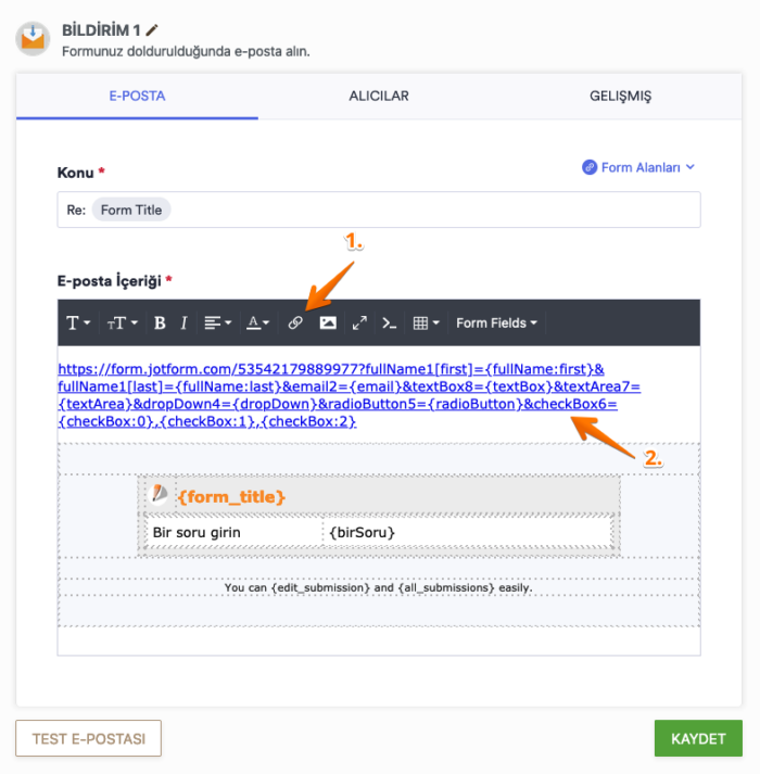 - {target_email}: Anahtar olarak hedef formun E-posta öğesi için özgün adı.