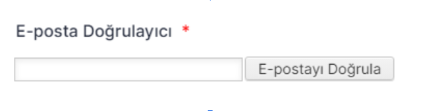 Peki bu widget ne işe yarar? Formunuza 2 öğeli bir alan ekler – Bir metin kutusu ve bir buton. Kullanıcılar e-posta adreslerini yazıp E-postayı Doğrula seçeneğine tıklar ve ardından doğrulama e-postasının gelen kutularına ulaşmasını bekler. 24 saat geçerli ve yalnızca bir kez kullanılabilecek benzersiz bir doğrulama kodu e-postalarına gönderilir.