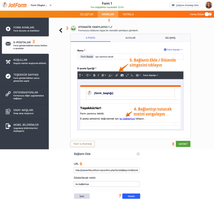 Form yanıtından önce doğrulayın: https://www.jotform.com/71062580238958