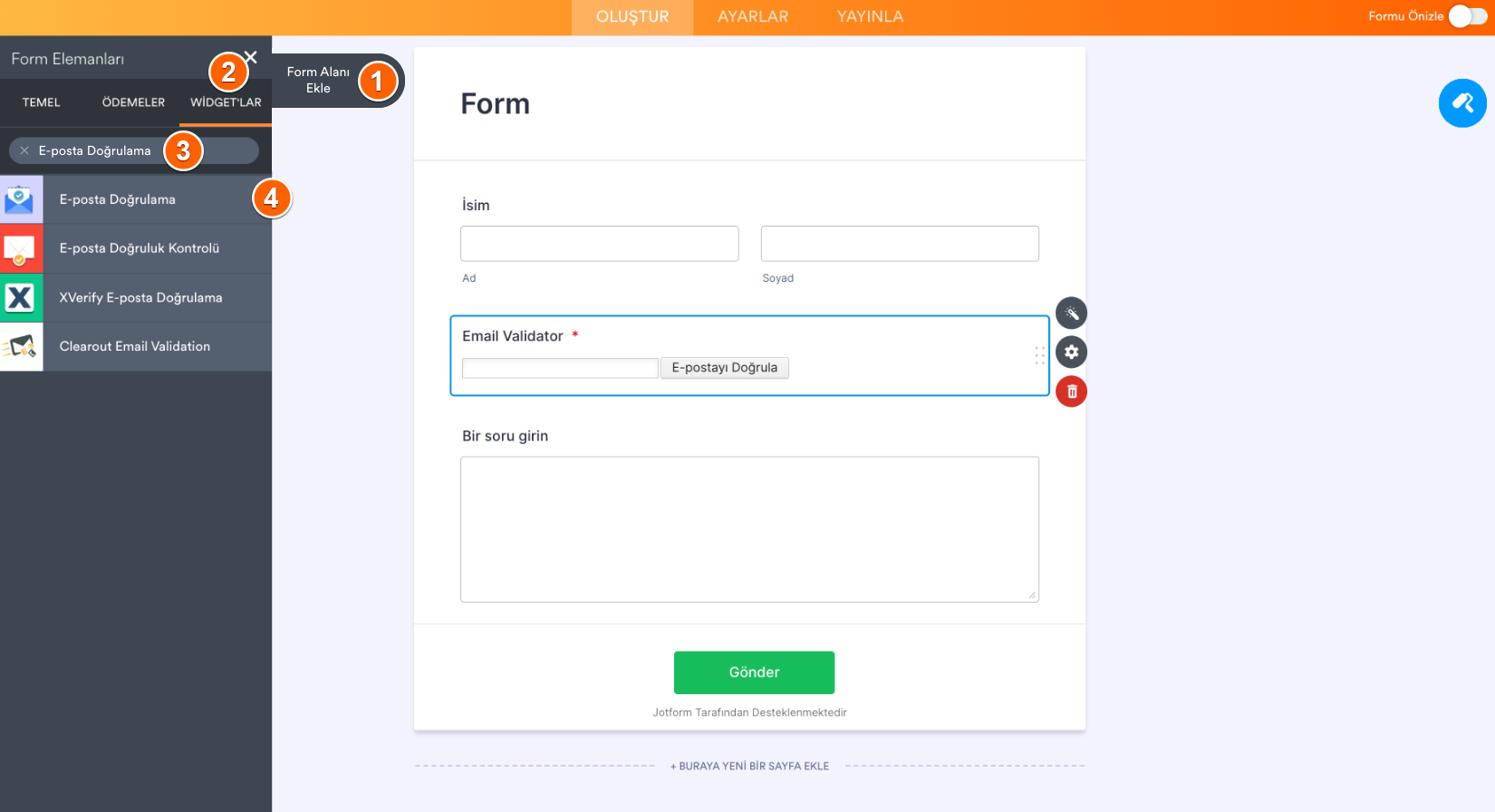 Adım 1. E-posta Doğrulama Widget‘ını kullanın.