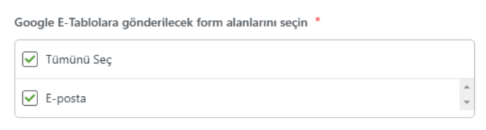 - Ardından Google E-Tablolar’a gönderilecek form alanlarınızı seçin.