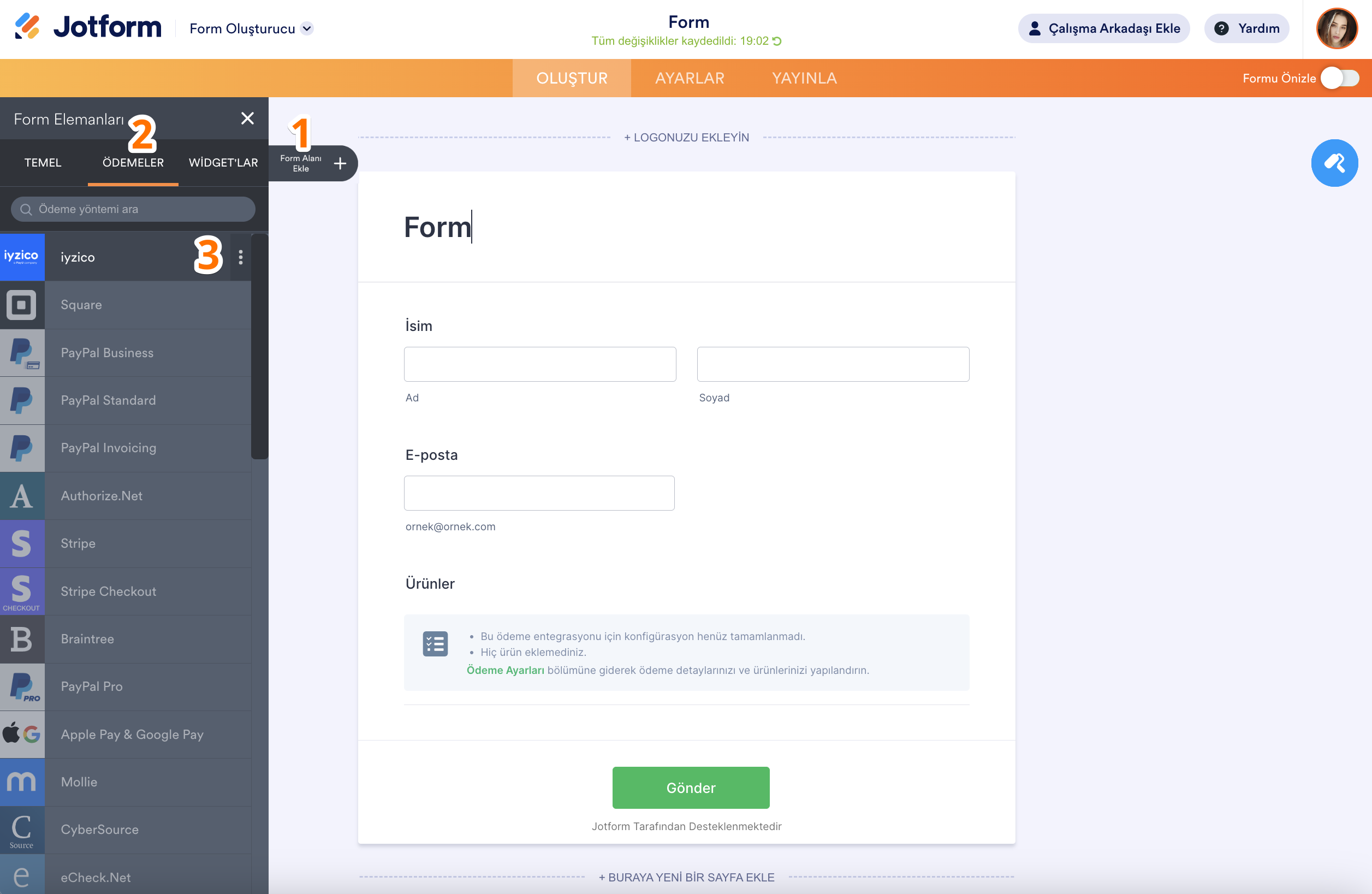 Jotform’un iyzico ile entegrasyonu, ödemeleri toplamayı daha erişilebilir, güvenli ve etkili hale getirir.