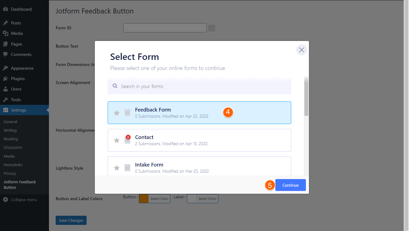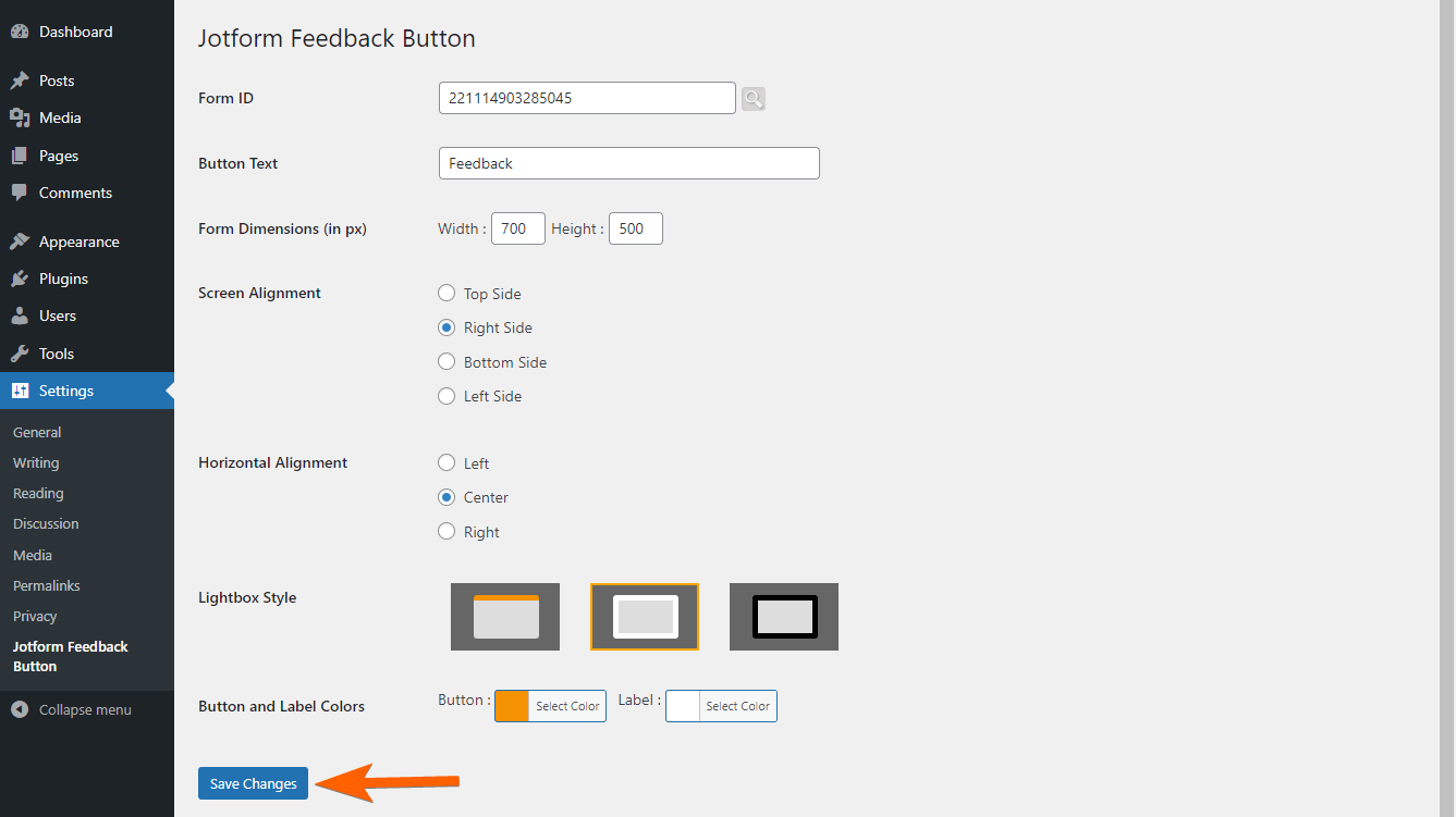 - Jotform Geri Bildirim Butonu eklentisini yükleyin ve etkinleştirin.