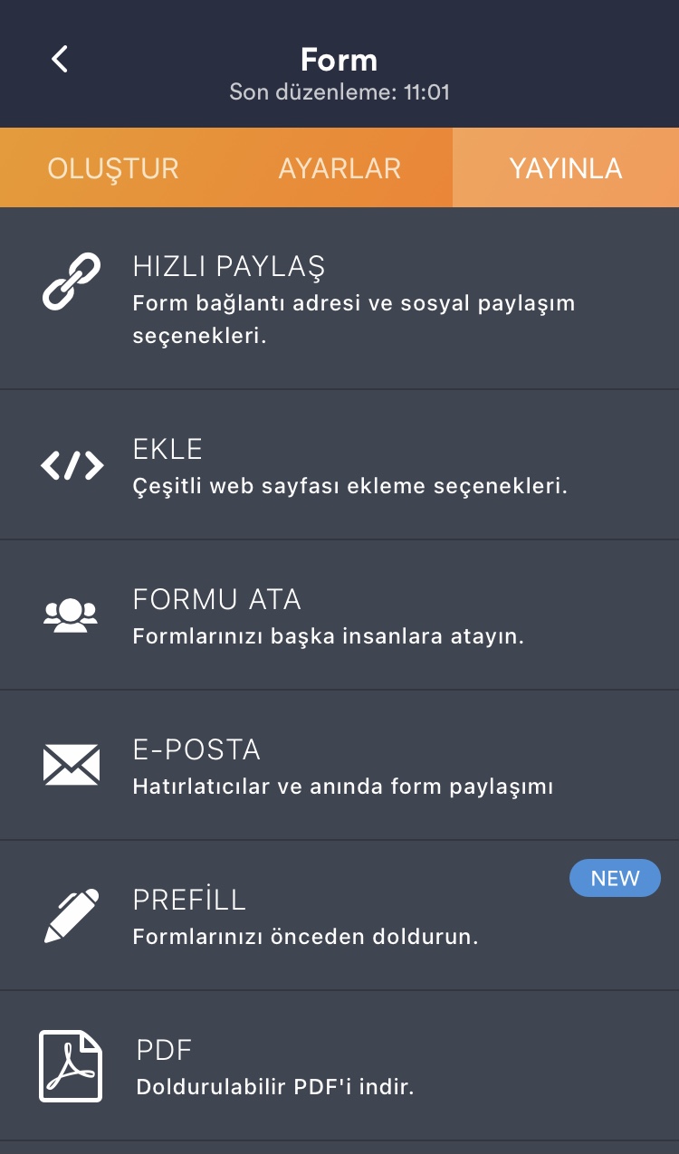 Elle Önceden Doldurma ile form sahibi, göndermek istediği formun alanlarını (formu dolduruyormuş gibi) önceden doldurur ve Oluştur‘a tıklar.