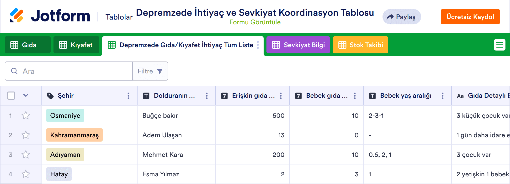 Online sipariş seçeceğine sahip bir online mağaza veya restoran işletiyor olsanız da, bu ücretsiz ve online Sipariş Takip Tablosu, siparişleri her zamankinden daha iyi yönetmenize yardımcı olacak! Başlamak için, müşterileriniz için ekteki sipariş formunu özelleştirmeniz ve yayınlamanız yeterlidir. Verilen siparişler, müşteri bilgileri, sipariş ayrıntıları, ödeme onayları ve çok daha fazlası tablonuzda otomatik olarak görünür.