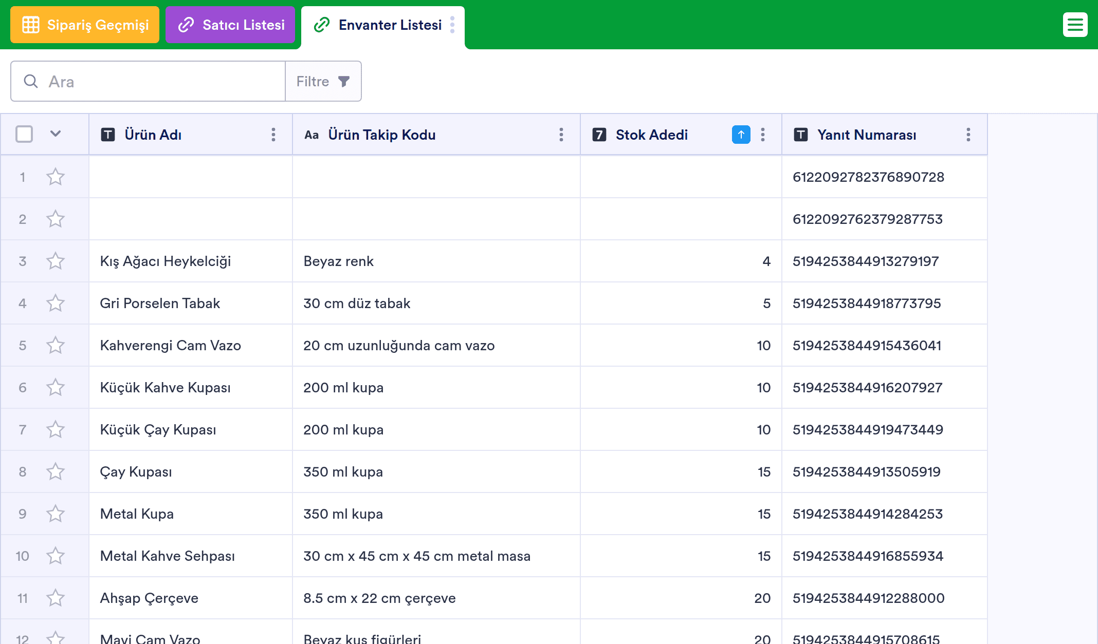 Kullanıma hazır bu Ürün Envanteri Teması, satıcılar ve sipariş geçmişi için ek sekmeler barındırmaktadır — ancak ihtiyacınız olduğunda, daha etkili bir envanter yönetimi için her zaman istediğiniz kolonlara ve girdilere sahip yeni sekmeler oluşturabileceğinizi de unutmayın. Hangi tür ürünler satıyor olursanız olun, işiniz gibi yüksek kaliteli bu Ürün Envanteri Teması ile envanterinizdeki her eşyanın takibini yapabilirsiniz.