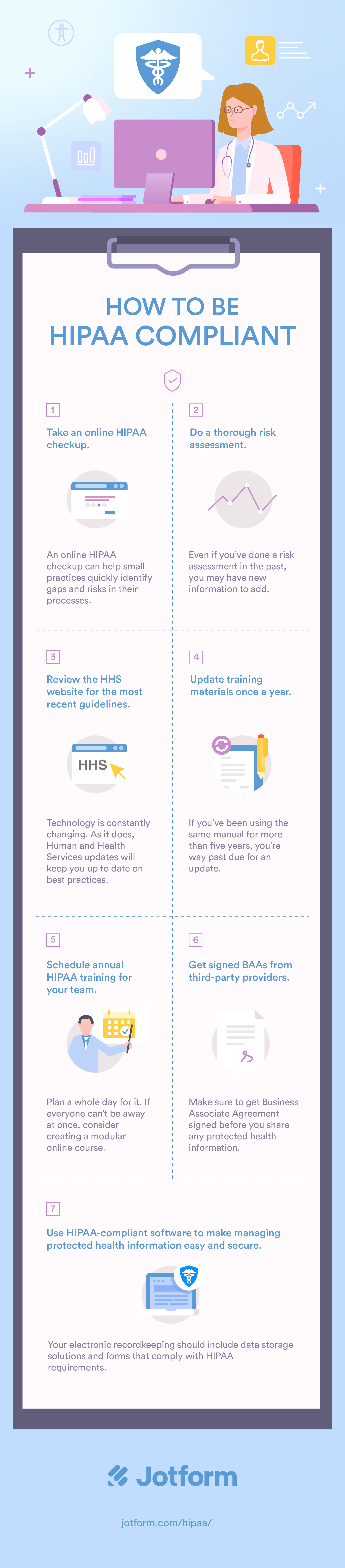 Here are seven steps that you can use as a HIPAA compliance checklist for your practice: